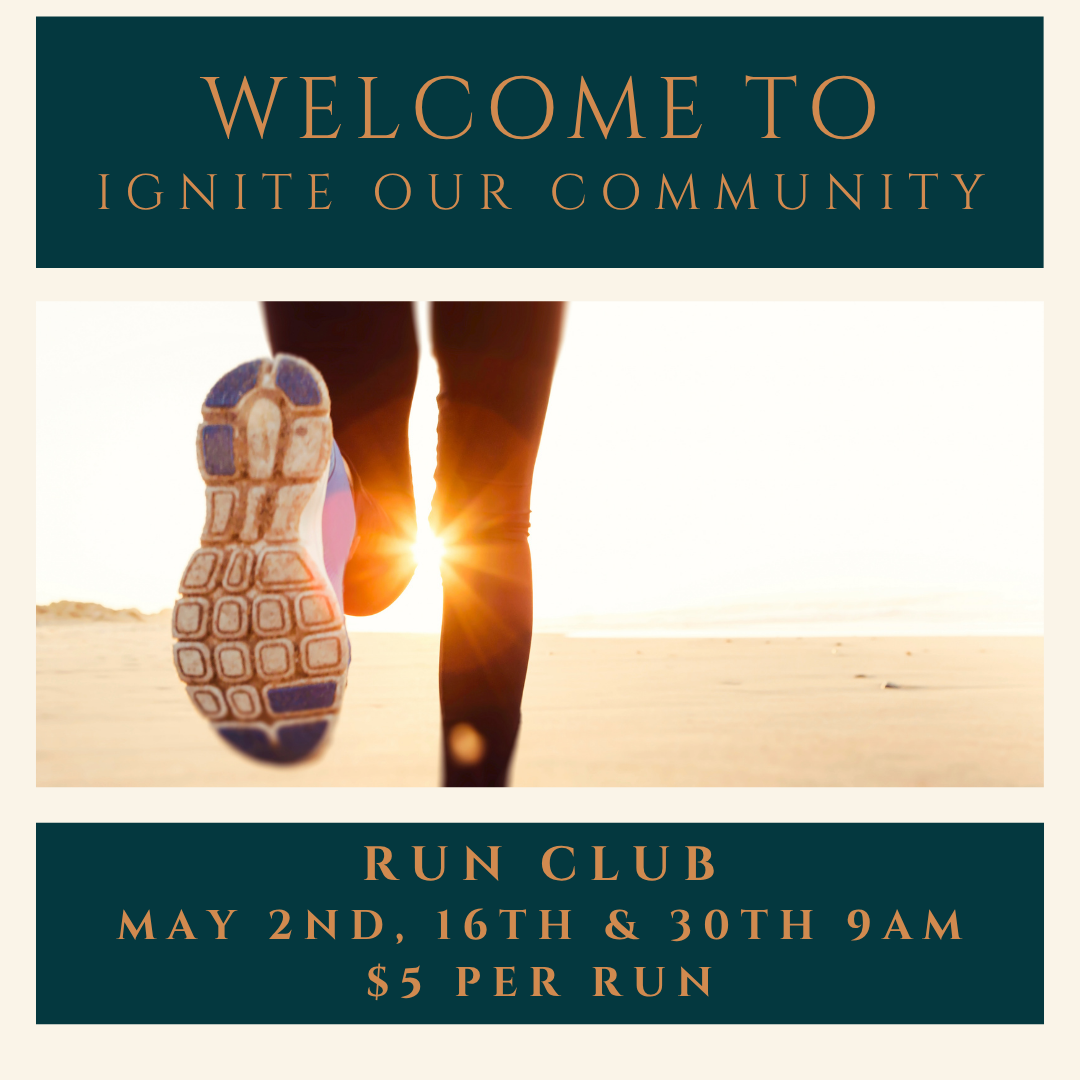 Ignite your Community with our Run club. By joining you support your health, strength, and mobility, while simultaneously supporting your community. Proceeds from this club go towards community events and local charities.Who- People of all ages, running abilities, and dogs.